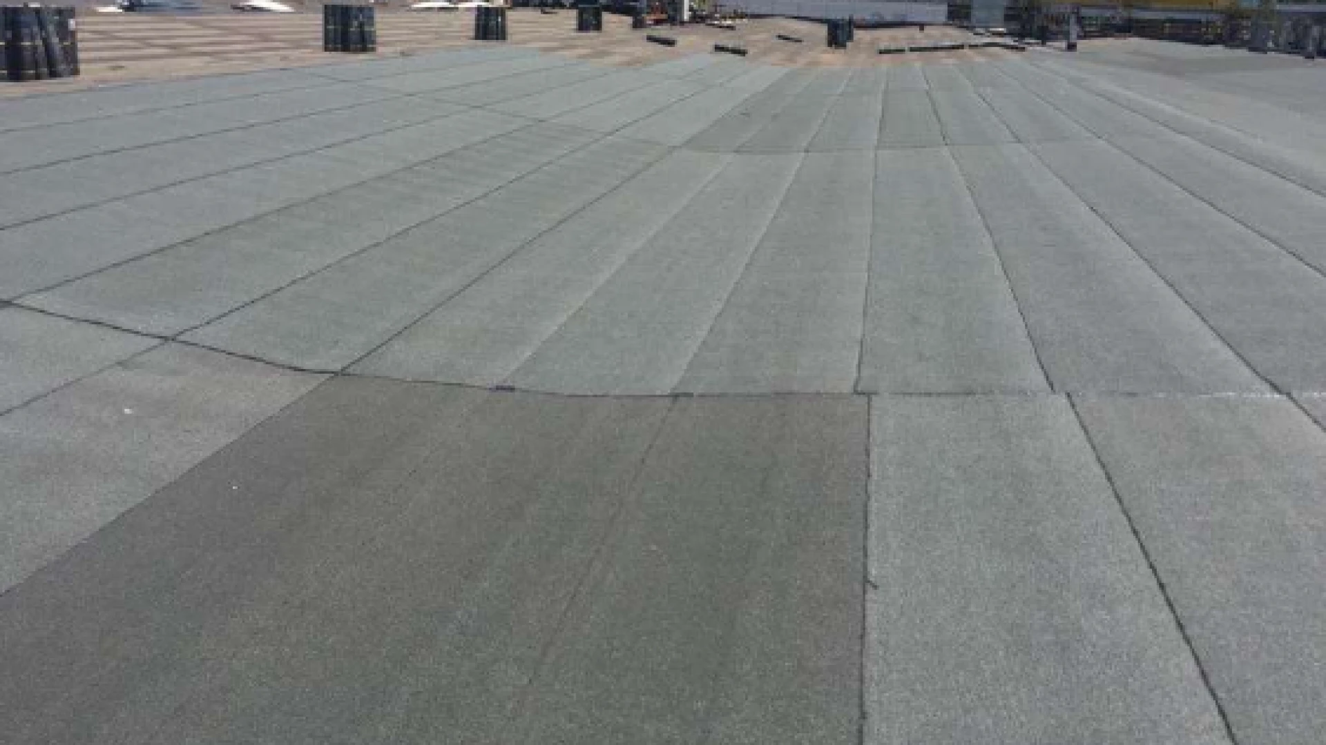- L’installazione del nuovo manto impermeabile costituito da doppio strato di membrana prefabbricata a base di bitume-polimero elastoplastomerico armata in tessuto non tessuto di poliestere da filo continuo posta nello spessore della membrana stessa, di cui il secondo strato autoprotetto con ardesia.